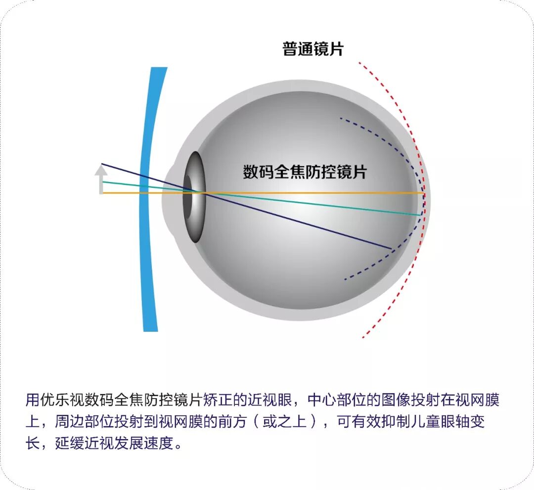 优乐视全焦镜片引进国际先进的“周边离焦控制技术”,保证了整个视网膜成像的舒适性和清晰度,特别是克服了普通镜片为达到良好的视觉效而产生的周边离焦,有效消除了次生的光学伤害,达到控制眼轴拉长,延缓近视加深。