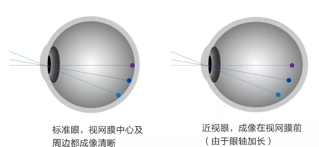 在青少年近视形成的过程中,周边视力处于离焦状态,造成视野紧缩、视点周围模糊等,导致眼轴不断拉长,近视不断加深。眼轴每拉长1毫米度数增加300度!因此周边视网膜远视性离焦,是导致近视增长的主要原因。