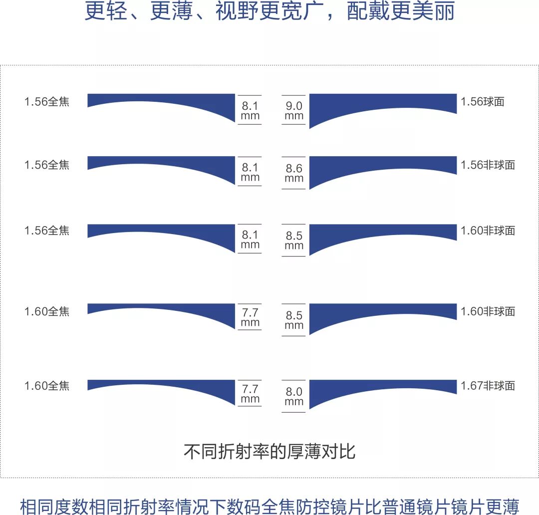 镜片中心从四周均匀递减,无视野盲区,全视域轻松阅读,方便持久阅读,配戴更舒适。