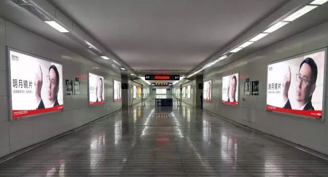 道明叔除了在丹阳高铁站通道两侧“夹道欢迎”,出站第一时间你会发现丹阳眼镜城的LED大屏上也是道明叔和明月镜片的身影。