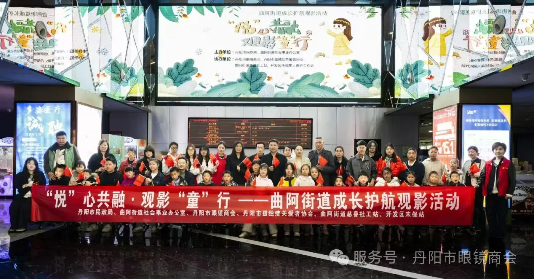 3月23日上午,丹阳市眼镜商会联合丹阳市民政局、曲阿街道社会事业办公室、丹阳市孤独症关爱者协会、曲阿街道慈善社工站、开发区未保站共同举办观影活动,邀请22位困境儿童及其家长、30多位孤独症协会成员及志愿者免费观看动画电影《哪吒2》。