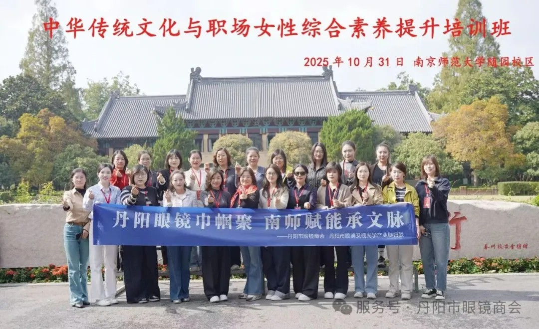 为深入贯彻丹阳市眼镜产业高质量发展战略,强化企业核心竞争力,精准培育行业女性人才梯队,丹阳市眼镜商会、丹阳市眼镜及视光学产业链妇联与南京师范大学培训中心联合主办的“中华传统文化与职场女性综合素养提升培训班”,于10月30在南京师范大学随园校区成功举办。为期两天的培训聚焦行业需求,为本市眼镜行业女企业家、管理者们奉上一场兼具专业性与实用性的知识盛宴。
