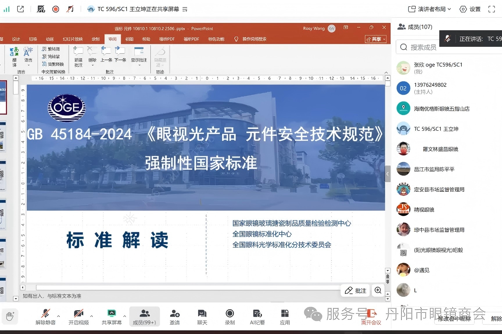 本中心标准室副主任、全国眼科光学分技术委员会副秘书长王立坤对国家标准GB 45184《眼视光产品 元件安全技术规范》进行解读并介绍了眼镜行业标准体系变化和产品标签规范。