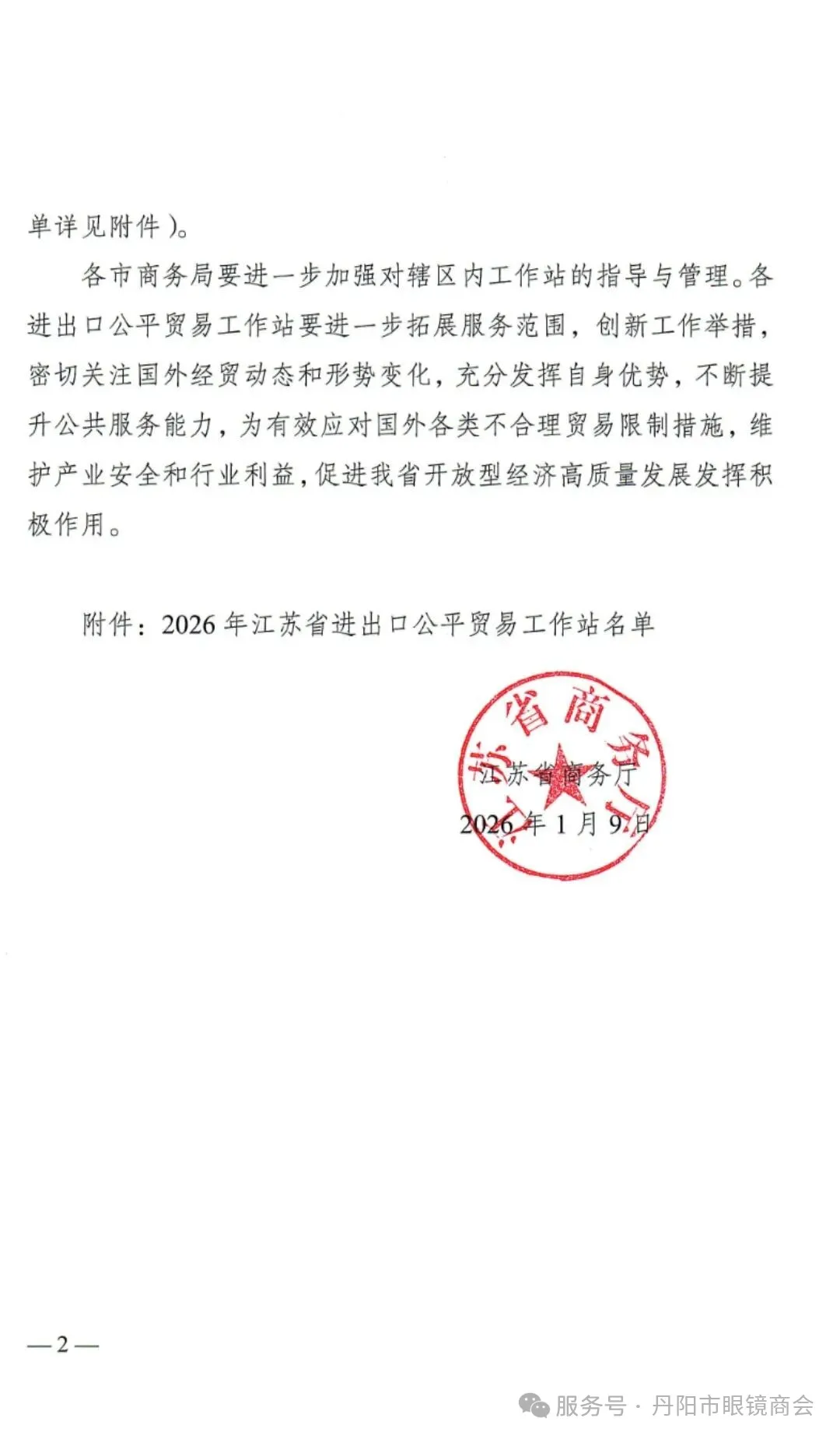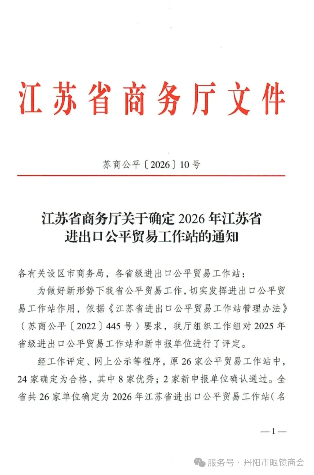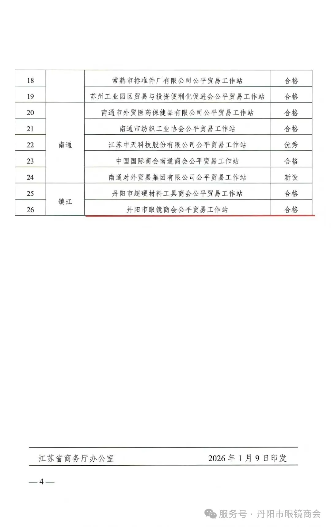 丹阳市眼镜商会公平贸易工作站通过考核被确定为2026年省进出口公平贸易工作站