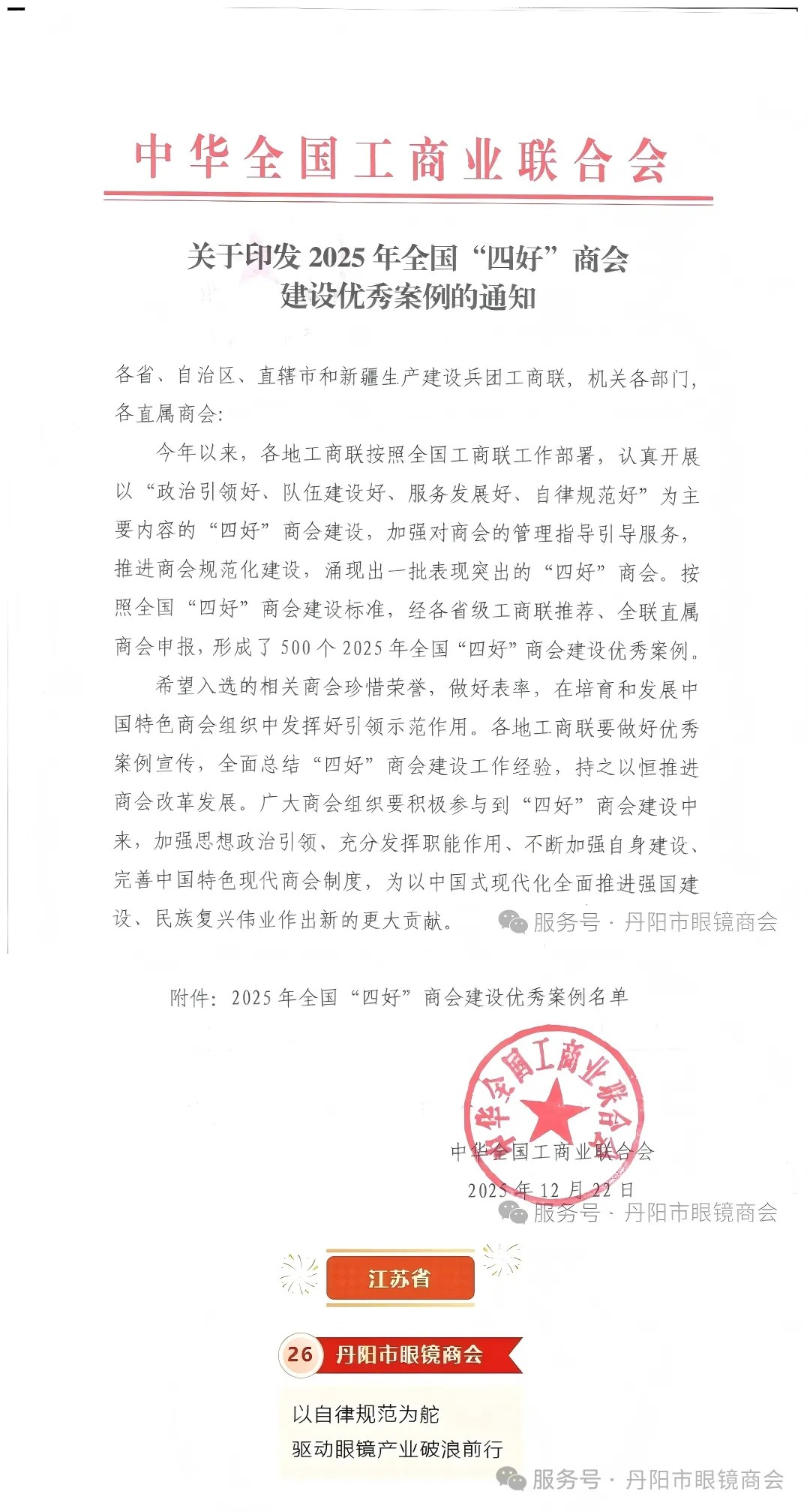 12月22日,丹阳市眼镜商会"以自律规范为舵 驱动眼镜产业破浪前行”申报案例获评全国“四好”商会建设优秀案例。