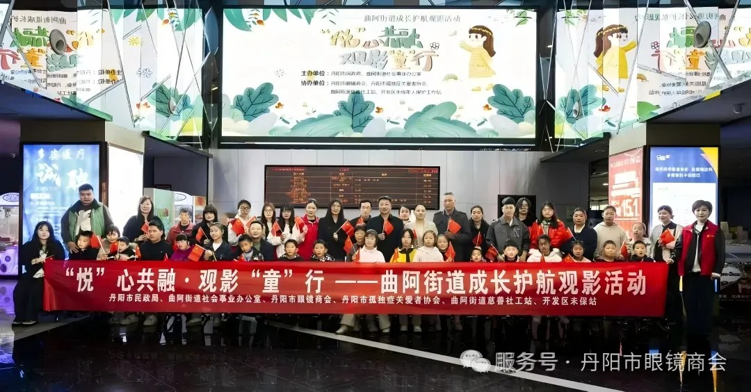 3月23日上午,丹阳市眼镜商会联合丹阳市民政局、曲阿街道社会事业办公室、丹阳市孤独症关爱者协会、曲阿街道慈善社工站、开发区未保站共同举办观影活动,邀请22位困境儿童及其家长、30多位孤独症协会成员及志愿者免费观看动画电影《哪吒2》。