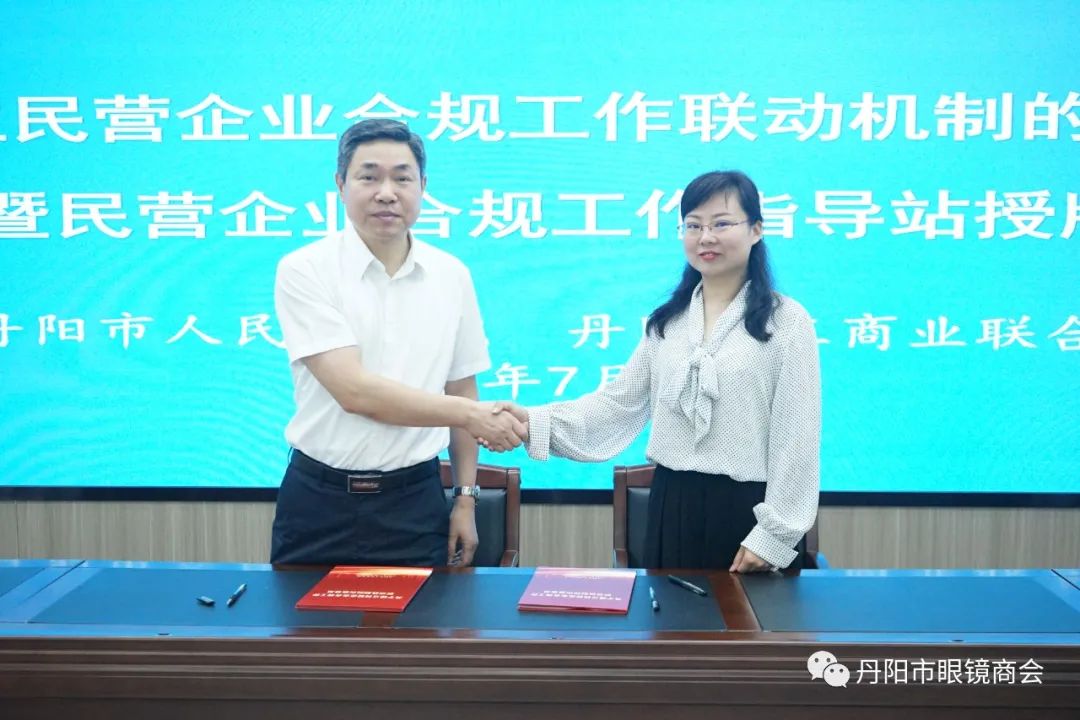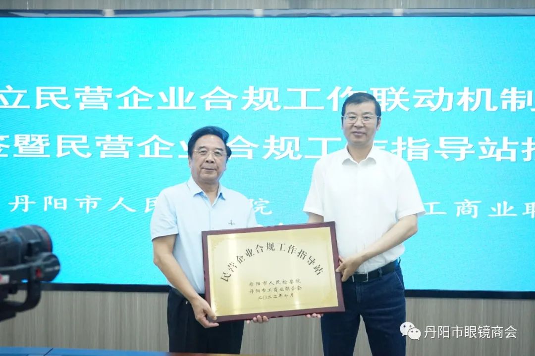 丹阳市委常委、统战部部长、市政协党组副书记杭春云,向丹阳市眼镜商会授牌;