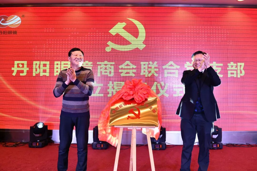 晚宴期间,举行了丹阳眼镜商会联合党支部成立揭牌仪式,并由司徒镇党委书记李庆丰先生、丹阳眼镜商会副会长、联合党支部书记吴金良先生共同上台揭牌。
