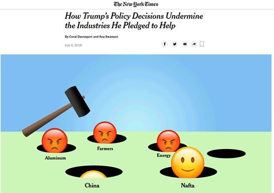 多位接受《纽约时报》采访的经贸学者还“一针见血”地指出了特朗普对中国等国家发动贸易战的一个最本质问题:他看似是想帮助美国的企业,可他与他团队那些混乱与缺乏清晰性的政策,却令他的”帮助”呈现出一种“按下葫芦浮起瓢”的尴尬场景,结果就是很多企业乃至整个都不知道该怎么去面对这些变化了。