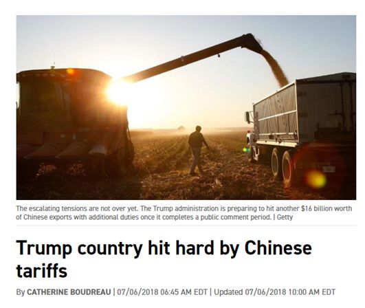 “我想告诉总统先生,请你不要再扰乱我们的市场了!”一位来自美国南达科他州的豆农,也对《纽约时报》这样说到。他说,即便特朗普出台了很多改善企业发展环境的政策,“可如果我们失去了中国的市场,就很难再夺回来了啊……”