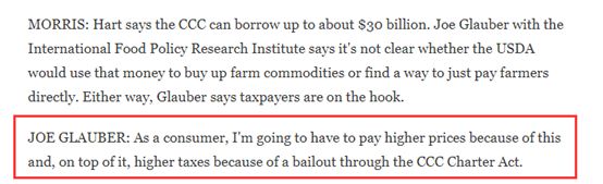 比如,一位美国爱荷华州立大学的学者就表示,单纯增加农业补贴根本无法在贸易战这样的冲突中保护农民的权益。而另一位美国食品领域的学者则表示,即便特朗普政府会出面直接收购农民的产品,这些收购的钱款还不是得从消费者——即纳税人——的口袋里出?