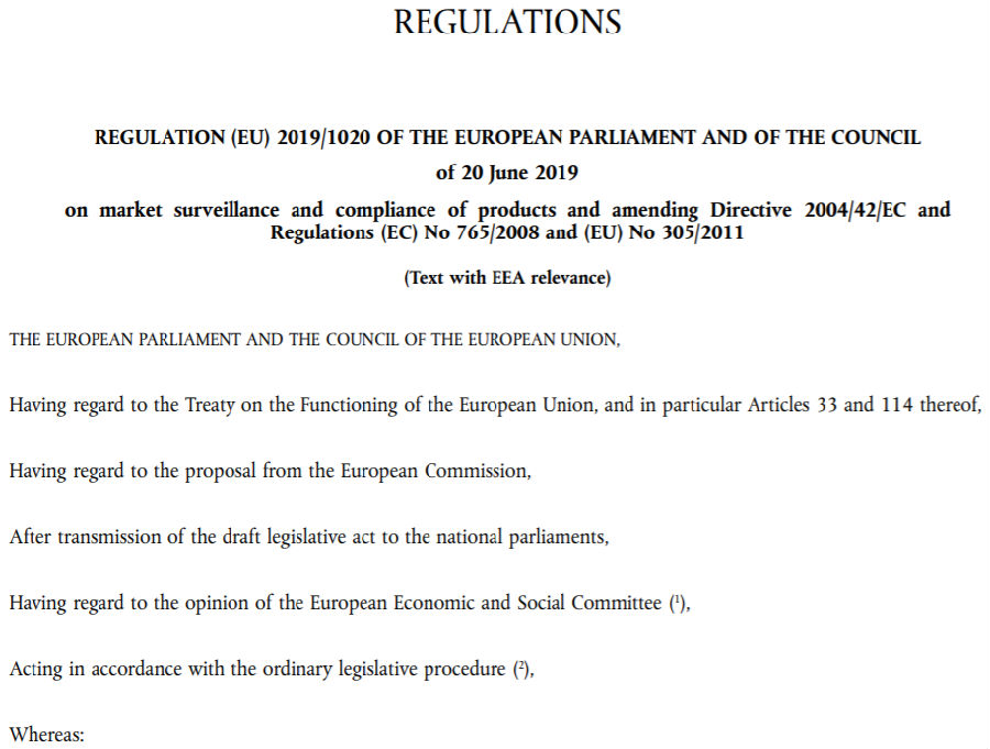 EU2019/1020法规原文链接: