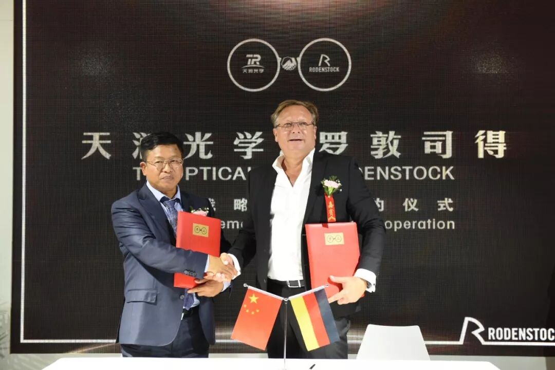 9月11号下午,江苏天润光学镜片有限公司与罗敦司得公司在北展馆内举行战略合作签约仪式,天润光学成为罗敦司得品牌中国地区唯一授权经销商,负责中国市场的镜片产品、市场专供镜片设计和镜架产品的销售与服务。双方将通过品牌合作,发挥各自优势,实现共赢。中国眼镜协会副理事长兼秘书长戴维平、丹阳市眼镜商会会长汤龙保、丹阳市眼镜商会秘书长袁红锦、天润光学董事长汤浩宇、罗敦司得CEO Oliver Kastalio、天润光学总经理赵留琴、罗敦司得亚太区销售总监Zimmermann Frederik以及行业内有影响力人士和主流媒体共同出席本次活动。
