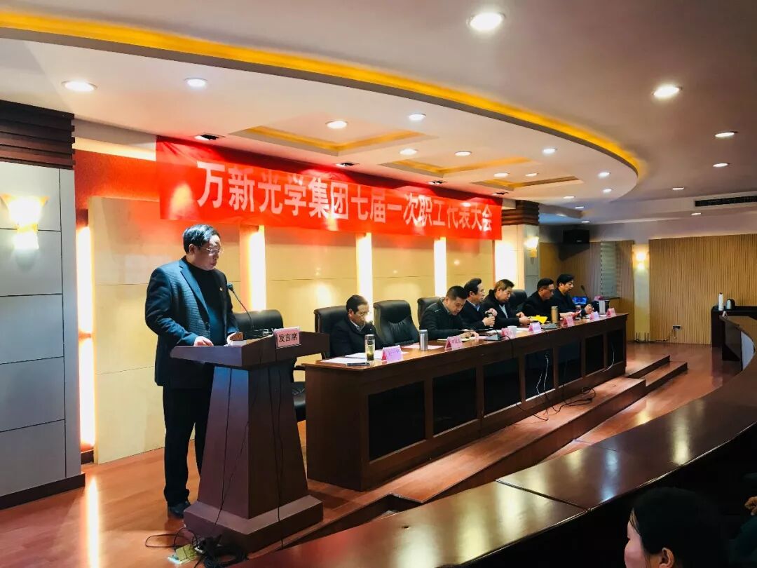 2018年3月20日,万新光学集团七届一次职工代表大会,在万新办公大楼六楼会议室圆满召开。董事长汤龙保,总裁汤峰等公司领导及职工代表等109人参与大会,进行工会委员会、女工委员会、经审委员会换届选举工作。
