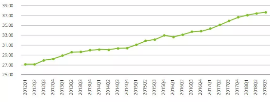 阿里零售平台数据显示,中高端商品消费占比逐步提升。2018年第三季度,阿里中高端消费指数达到37.63,从同比来看,指数提升了1.76个点。从重点城市来看,北上广深一线城市的中高端消费指数平均值达到43.14,同比提升2.02个点。15个新一线城市,以成都、杭州为代表,平均值为39.90,同比提升1.74个点。低线城市增速高、潜力大,如,三、四、五线城市的中高端消费指数同比上年分别提升2.11、2.06、2.04个点,增速快于一线、新一线、二线城市。