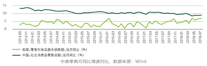 消费成为中国经济的核心驱动力之一。从消费、投资、净出口三大需求的角度来看,2018年上半年最终消费支出对GDP增长的贡献率达到了78.5%,贡献率自2014年开始便持续上升,消费作为经济增长第一驱动力的地位更加显著。