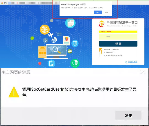 解决办法:右键点击桌面“我的电脑”-“管理”-“服务和应用程序”-“服务”,右键点击“中国电子口岸安全控件服务”选择“重新启动”,几秒钟后会提示启动成功,插拔读卡器USB接口,重新登陆。