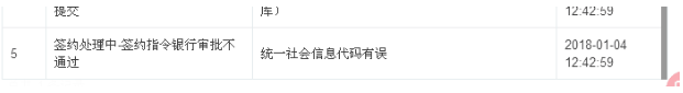 如果签约失败,请点击“签约失败”红色标识,在详细信息中检查,查看第5行是否有如下相关信息: