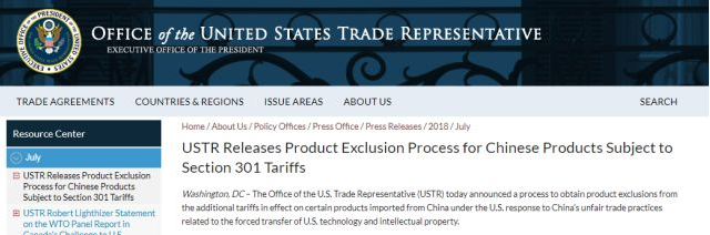 排除申请应登陆www.regulations.gov网站,之后输入案号USTR-2018-0025,点击“comment now”进行网上提交。